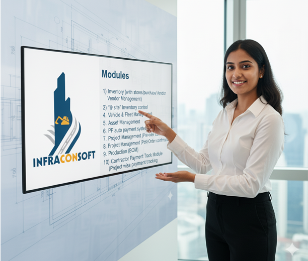 "Infraconsoft" a brand product of Nissi Infotech. offers complete end-to-end solutions to the construction companies. We provide this software for handling Road, vehicle, project, production and tender management in the construction industry to manage their operations which are spread in various stages and locations.